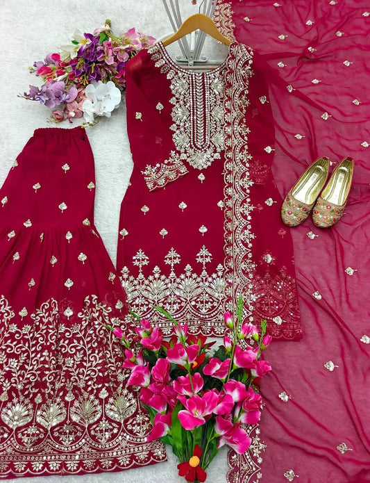 Heavy Georgette Top-Plazzo and Dupatta Set Fully Stitched Ready to Wear