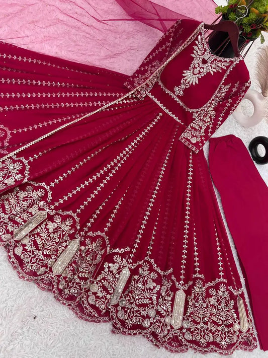 Heavy Embroidery Sequence Work Suit With Top Bottom Dupatta Elegant Dresses